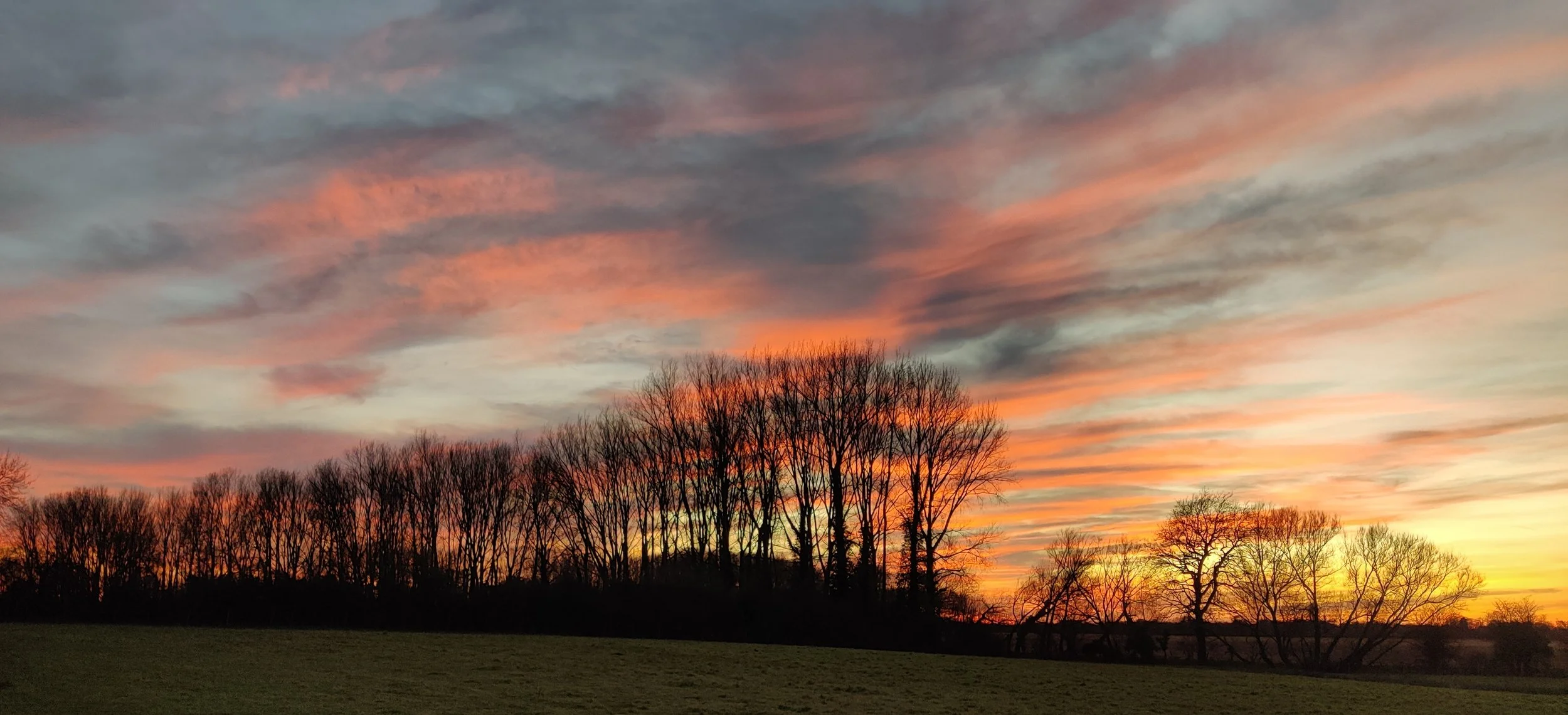 I really enjoy spending time in nature from walking and cycling but I am interested in your experience and if you would like to contribute an article on the benefits of meditation in nature and your experience of the power of awe. The photograph below, taken on a dog walk at sunset, for me was really awe inspiring and the beauty of the sky and clouds really focuses the mind and provide that feeling of gratitude and happiness to experience the beauty of nature.