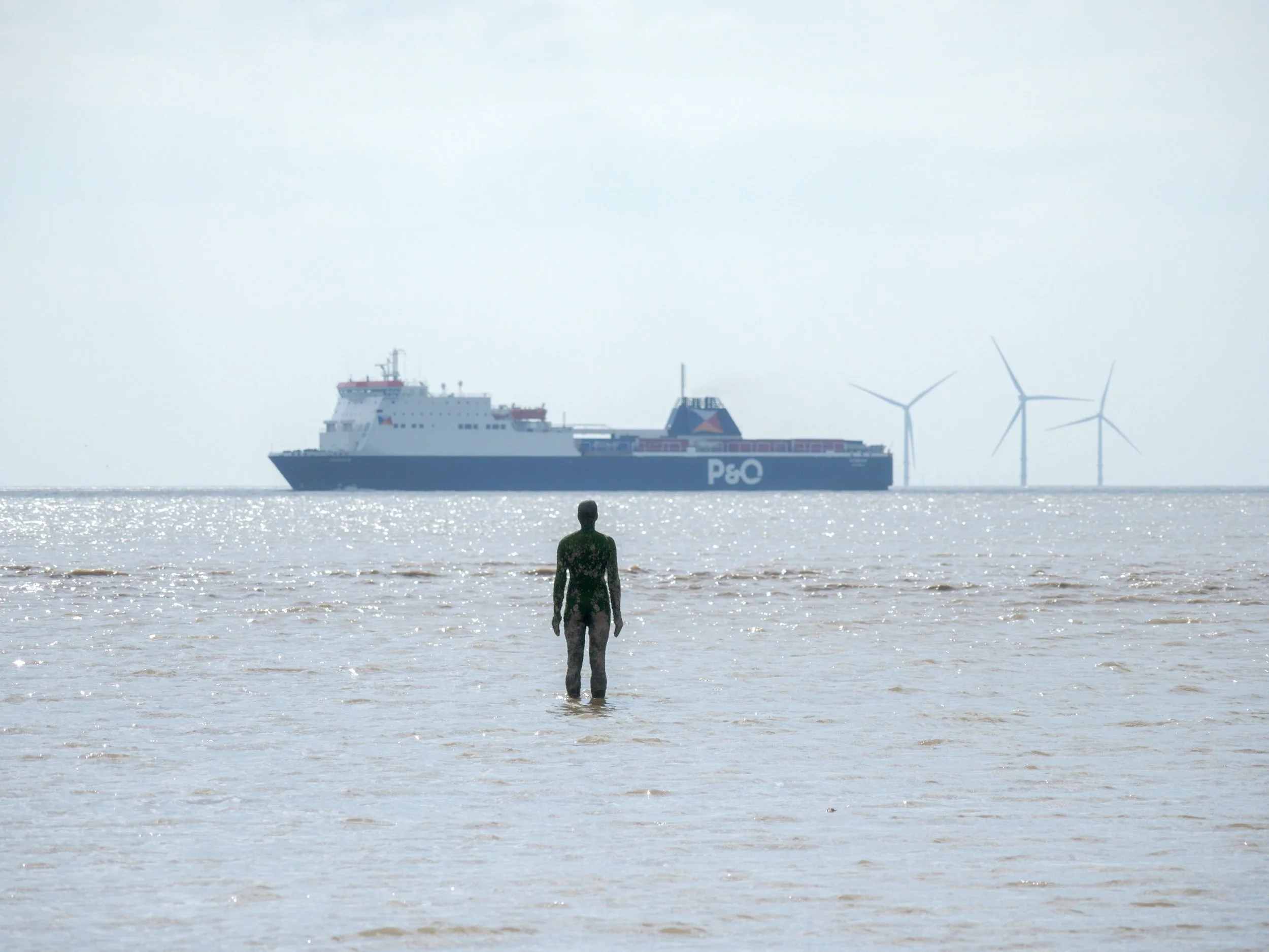 The below image is one of Anthony Gormley’s statue men in his public art display called “Another place” at Crosby beach just 6 miles north of Liverpool city centre, United Kingdom. The below is 1 of 100, cast Iron statues that are life sized and are spread over 2 miles of the beach and take up different positions in the sea. Depending on the time of the day it is a very haunting experience as they can be submerged at different levels in the sea. I have been very fortunate to visit Crosby beach and for me personally I found it very emotional as the statue men look out to the Irish sea. Like so many Irish people, my parents emigrated from Ireland in the 60’s to London and worked hard to provide a secure family foundation for my childhood in a very challenging environment. The picture below for me was very emotive, with the ferry in the background reminds me of my annual holidays to Ireland by coach, train and ferry across the Irish sea.